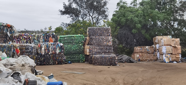 Some of the company’s baled waste material on display before they are collected by interlinks trucks for further processing in Gauteng